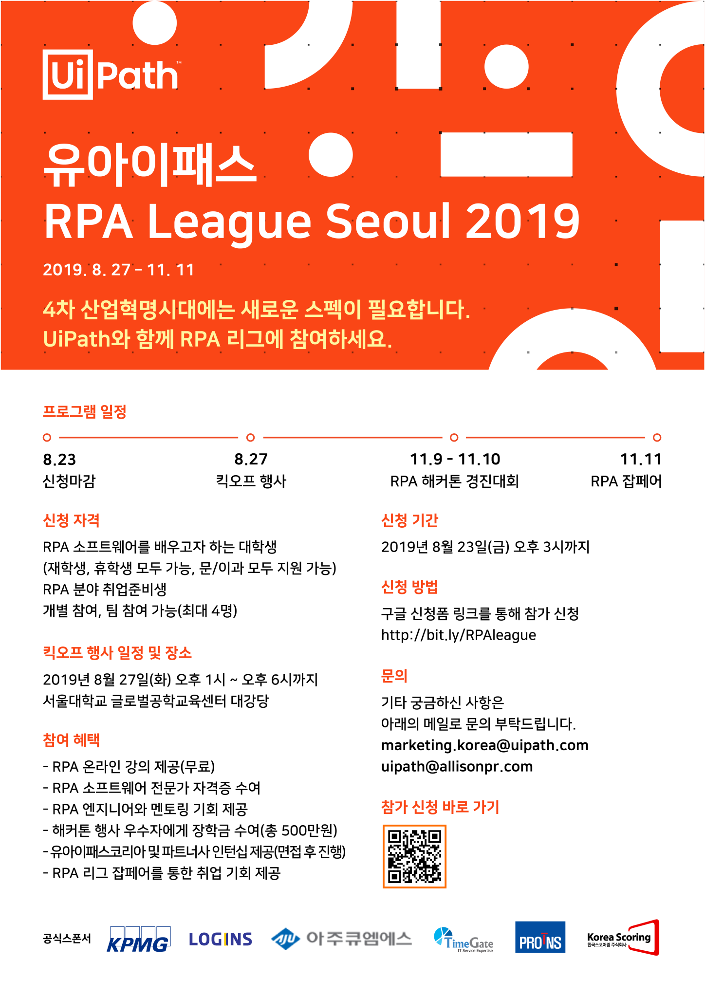 무료 RPA 교육 받고, 해커톤 상금 500만원 받자!...유아이패스코리아, RPA 리그 2019 개최