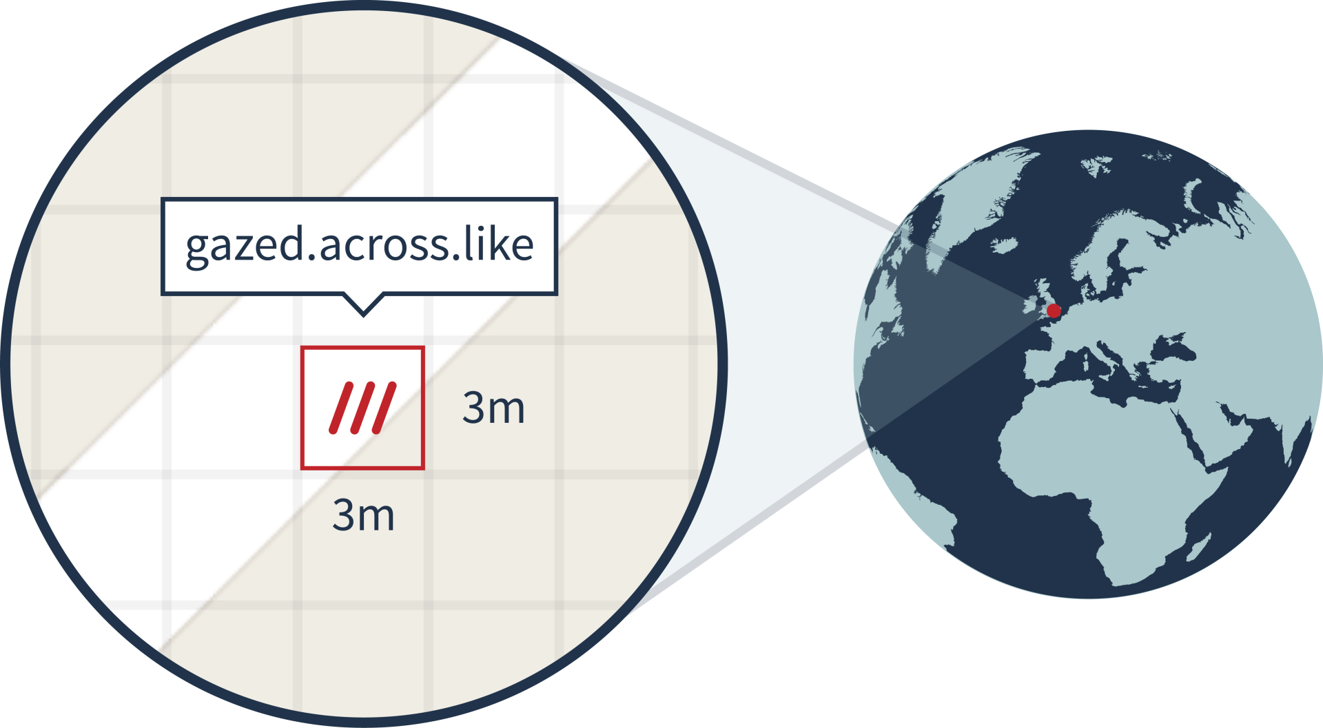 왓3워즈는 지구 전체를 가로 3m 세로 3m의 정사각형 그리드로 나누고, 각각의 구역에 3개의 단어를 조합한 이름표를 이용해 위치를 표시한다. 3개의 단어로 구성된 위치는 스마트폰 앱이나 웹 지도에서 확인하고 공유할 수 있다.(사진:what3words)