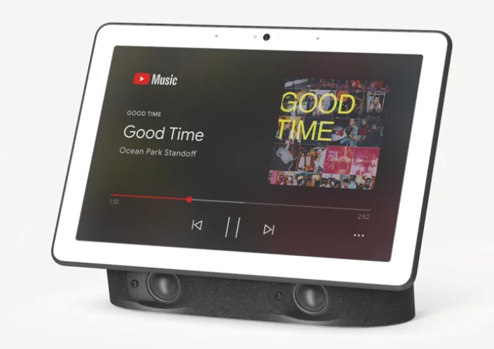 10인치 터치스크린 디스플레이와 스테레오 스피커를 탑재한 구글 네스트 허브 맥스. 구글 어시스턴트를 지원하는 스마트 디스플레이로, 화상통화, 디지털 앨범, 스마트 홈 컨트롤러, 동영상 및 음악 감상 등 다양한 용도로 활용할 수 있다.(사진: 구글 스토어)