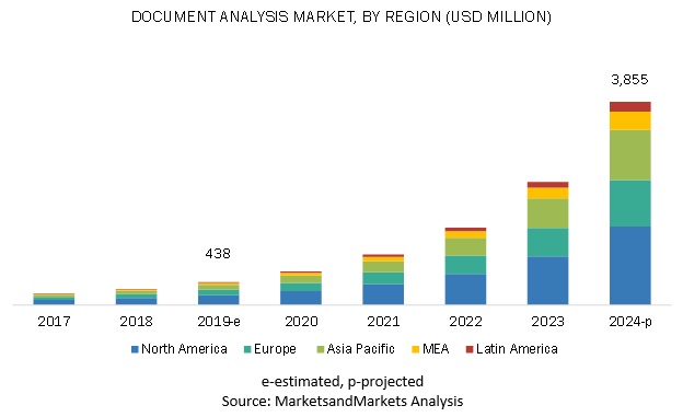 2019년 4억 3,800만 달러를 기록한 문서 분석 시장 규모가, 2024년까지 약 38억 5,500만 달러로 성장할 것이라는 전망이 나왔다. 같은 기간 동안 문서 분석 시장의 연평균복합성장률(CAGR; Compound Annual Growth Rate)은 54.5%에 달할 전망이다. 시장조사 전문기관인 마켓앤마켓이 이러한 문석 분서 시장을 분석한 ‘솔루션, 배포 유형, 조직 규모, 업종, 지역에 따른 글로벌 문서 분석 시장’ 보고서를 발표했다.