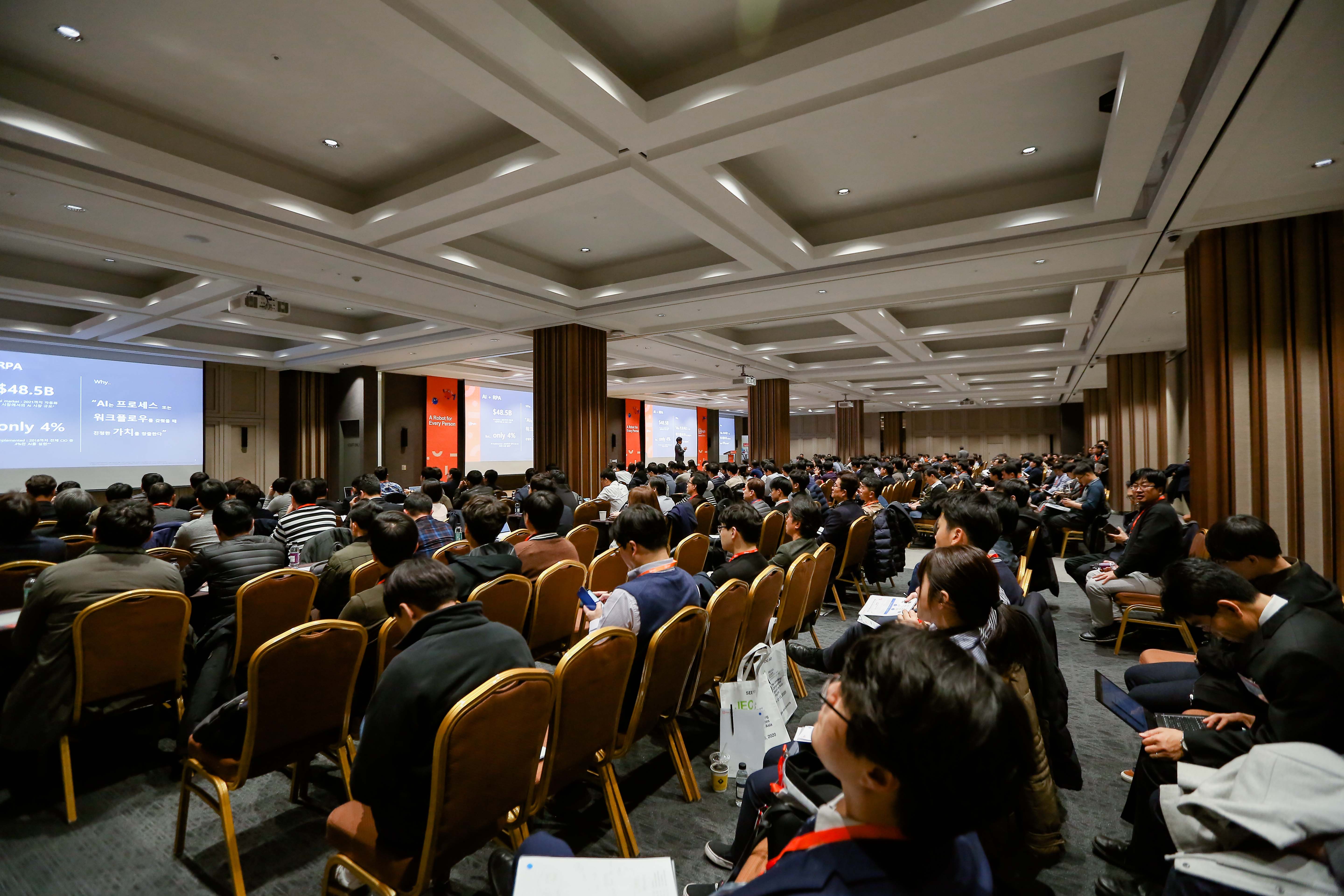 유아이패스코리아가 11월 14일코엑스 컨벤션 컨퍼런스 홀에서 개최한 RPA 세미나에서, 참석자들이 발표 내용을 경청하고 있다. 이날 세미나에서는 글로벌 RPA 트렌드, 새로운 유아이패스 RPA 플랫폼 소개, 고객사 추진 사례 등이 소개됐다.(사진:유아이패스코리아)