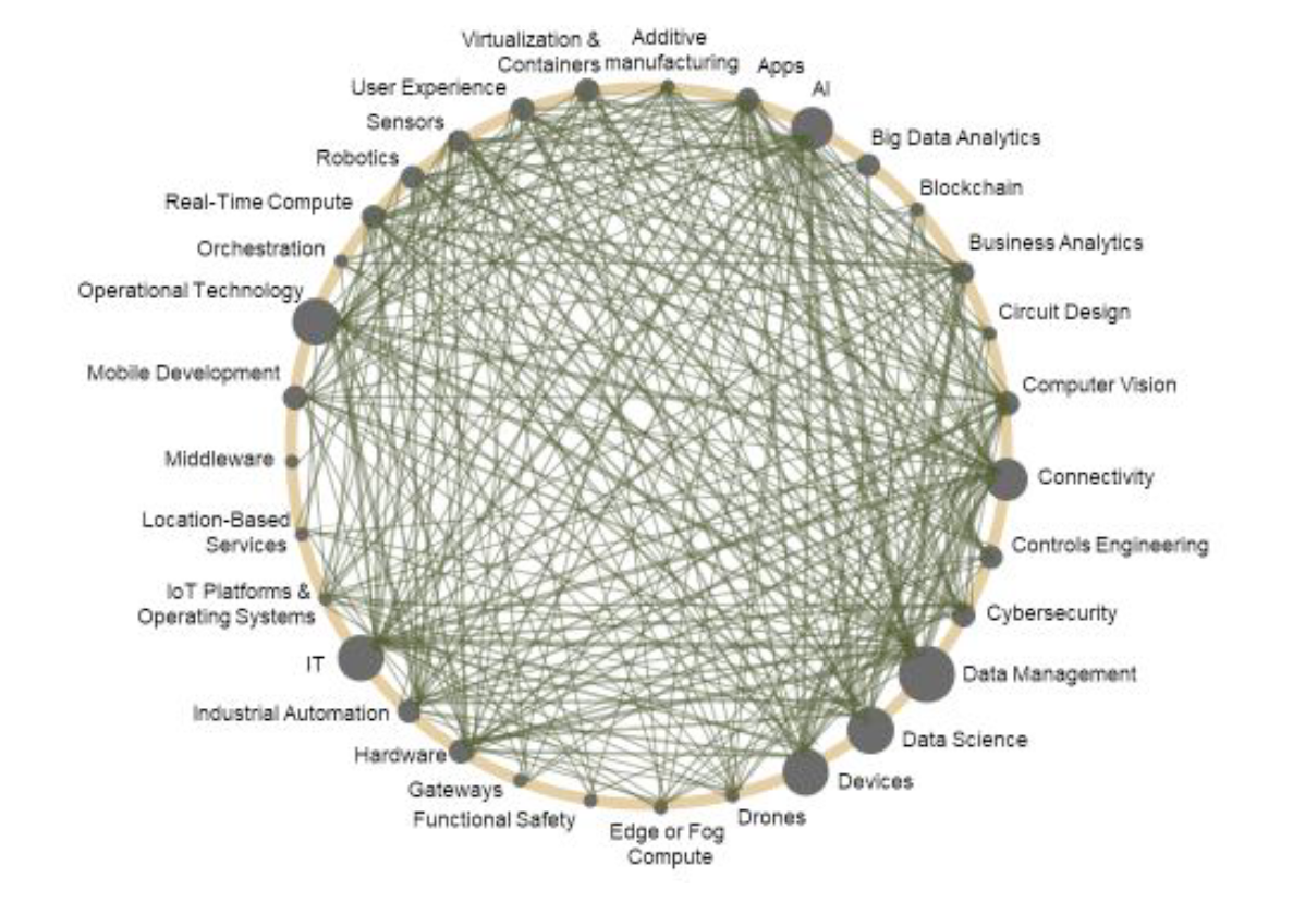 현재 가장 가치 있는 기술로 인정받는 다섯 가지 항목은 ►현대 프로그래밍 또는 소프트웨어 공학의 기초 ►제조 기술 ►훌륭한 의사소통 능력 ►브레인 스토밍이나 디자인 사고 같은 혁신 기술 ►전통적인 IT 기술이다. 미래를 위해 강화해야 하는 것으로는 ►최신 프로그래밍 또는 소프트웨어 엔지니어링 기술에 대한 깊은 이해 ►디지털 기술에 대한 재능 또는 기존 기술과 신흥 기술 활용 능력 ►데이터 과학 ►연결성(Connectivity) ►사이버 보안(Cybersecurity)을 꼽았다.