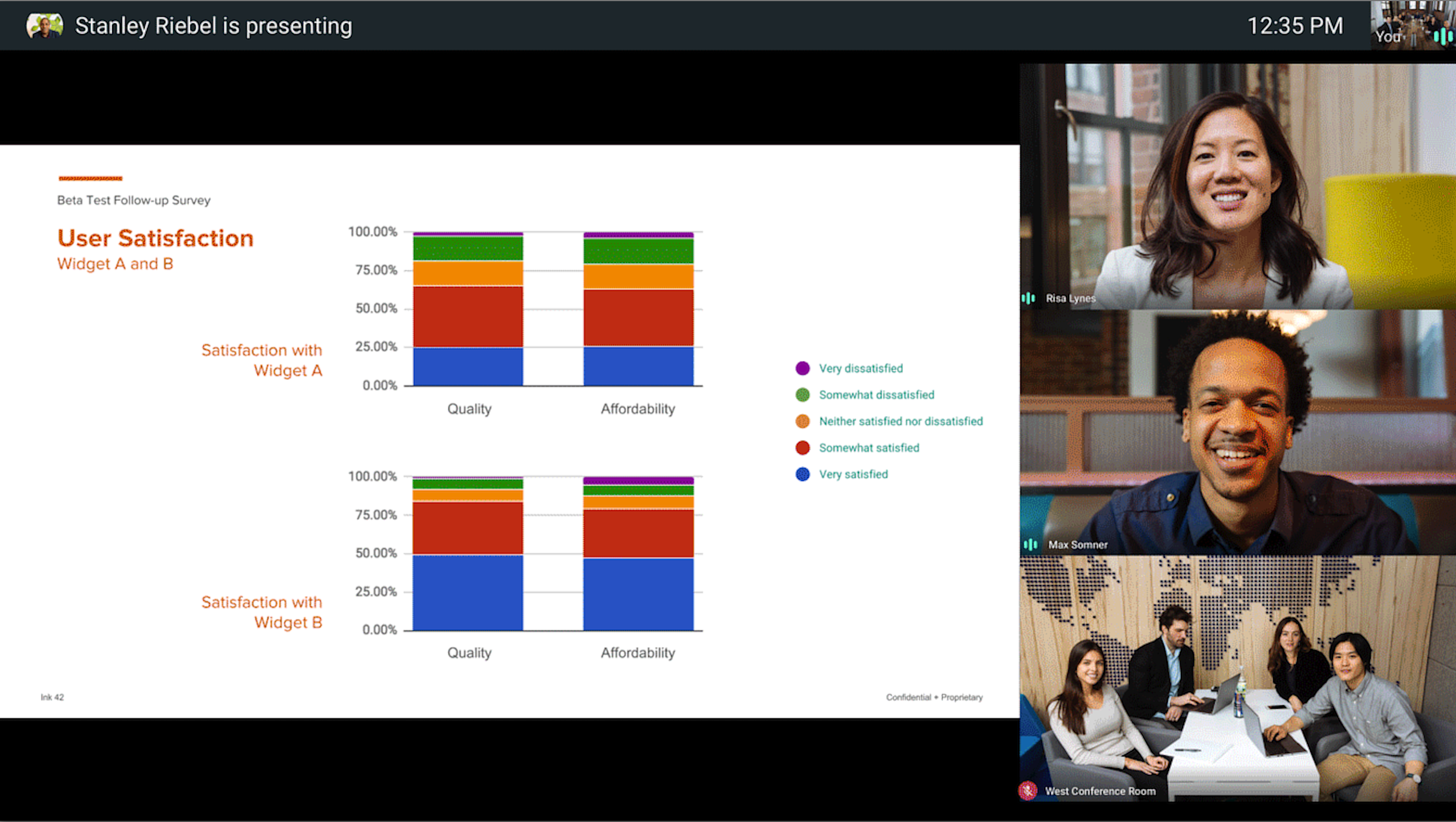 다섯째는 화면 레이아웃 변경 기능을 적절하게 활용한다(Want to read the room? Change the screen layout). 서로 다른 장소에 있는 사람들과 원격으로 회의를 진행할 때는, 상황에 따라 화면 레이아웃을 수시로 변경하며 진행하는 것이 좋다. 행아웃의 레이아웃은 자동, 타일식, 스포트라이트, 사이드바 네 가지 모드가 있다. 따라서 발표 자료를 보아야 할 때, 전체적인 회의 참석자의 분위기를 살필 때 등, 집중해야 할 부분에 초점을 맞춰 화면 레이아웃을 변경한다.