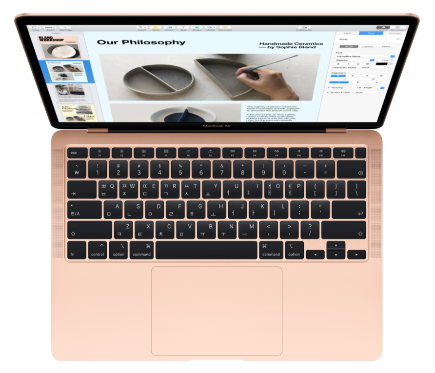 일단 결론부터 말하자. 이번에 선보인 맥북 에어의 가격은 132만 원 부터 ‘시작’한다. 그런데 그 ‘시작’이 뜻밖에도 애플답지 않게 ‘배려(?)’의 느낌이 살짝 보인다. 기본 메모리는 8GB부터 시작하고, SSD 기본용량이 '256GB'다. 디스플레이는 트루 톤(True Tone) 지원 레티나에, 터치 ID도 지원한다. 프로세서는 1.1GHz로 동작하는 인텔 듀얼 코어 i3(최대 3.2GHz 터보 부스트 지원)를 탑재했다. 프로세서 사양에 아쉬움을 가질 수 있겠지만 애플이 말하는 ‘시작’ 모델이라는 점을 잊지 말자.
