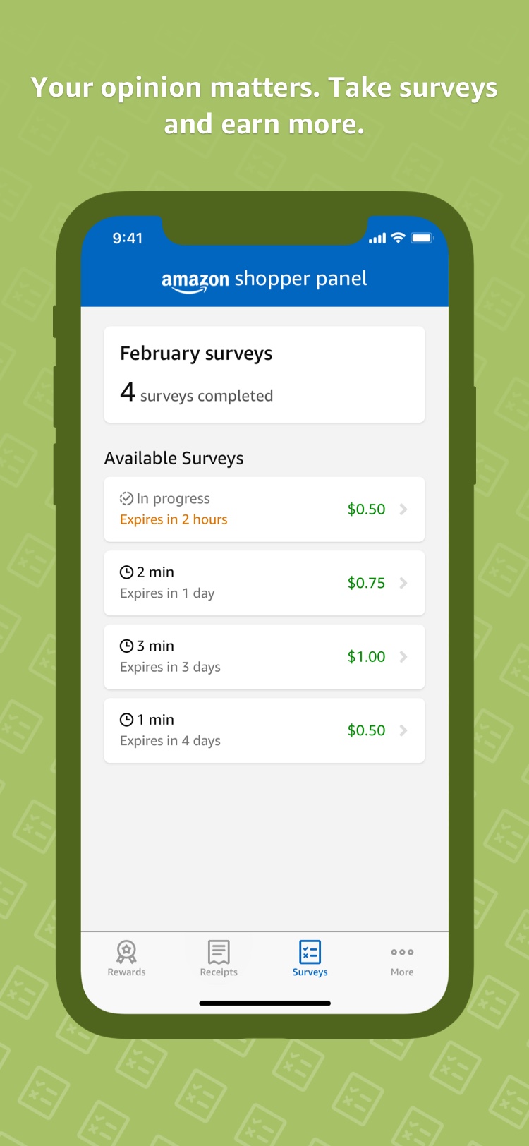 보상을 받는 방법은 쉽다. 그러나 아무나 그 보상을 받는 프로그램에 참여할 수는 없다. 아마존이나 아마존 자체 상점이 아닌 아마존 이외의 소매 업체에서 구매한 모든 상품 영수증이 대상이다. 받은 영수증 사진을 촬영하거나 이메일 영수증을 프로그램 전용 메일 계정으로, 한 달에 10개를 보내면 된다. 아울러 설문 조사를 완료할 때마다 추가적인 보상이 주어진다.