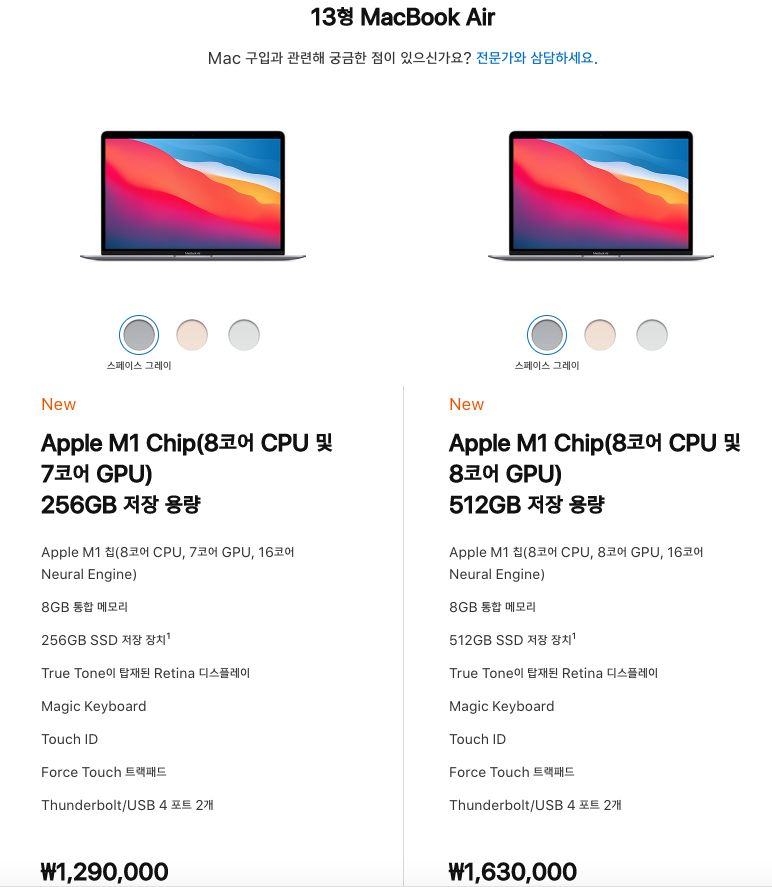 ▶︎ 맥북 에어 및 맥북 프로 사양 비교
