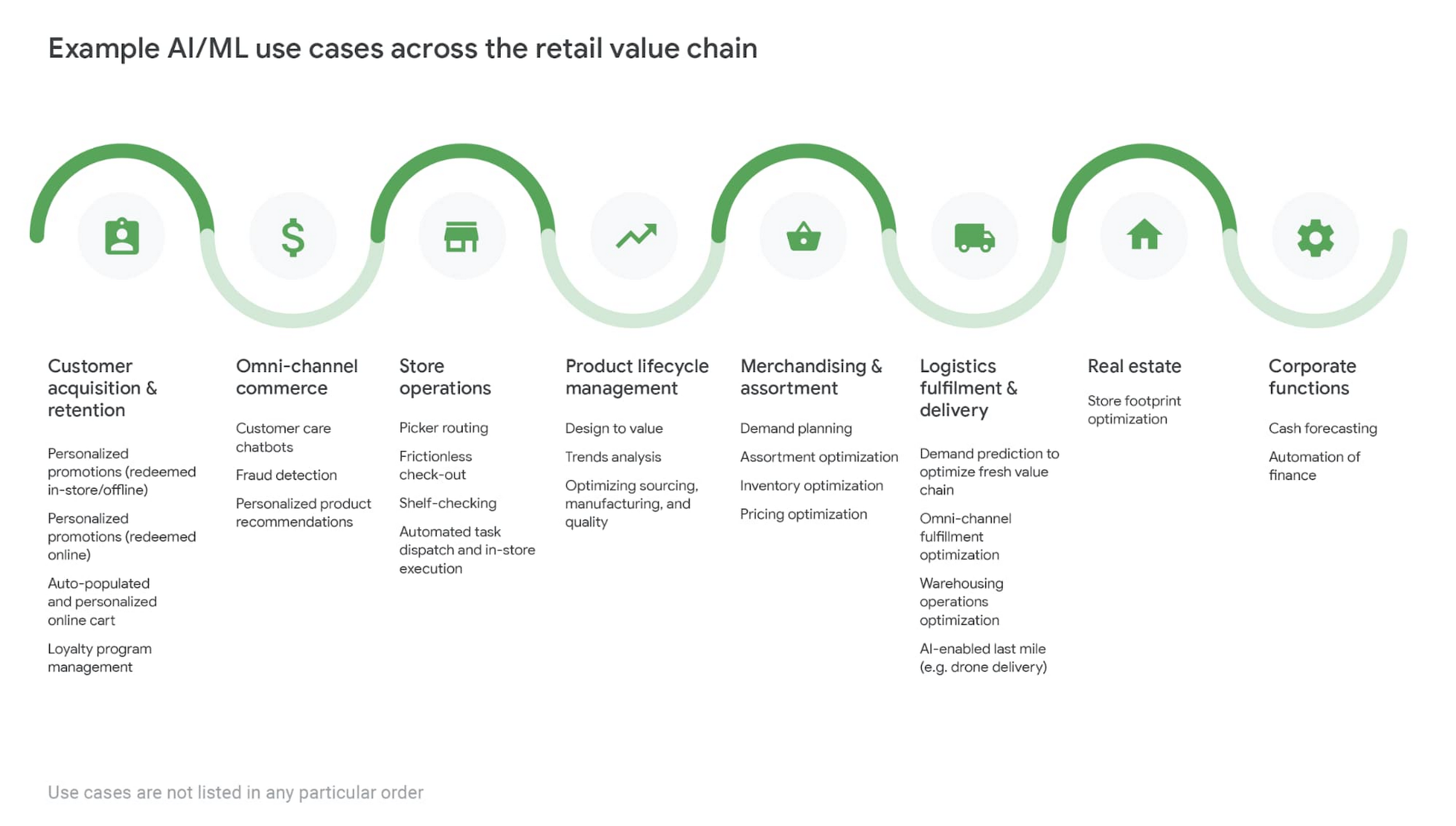 구글 클라우드는 최근에 글로벌 소매 부문 경영진을 대상으로 설문 조사를 진행했다. 소매 산업 전반에 걸쳐 다양하게 적용된 인공지능과 머신러닝 사례 중에서, 어떤 것이 가장 높은 가치와 수익을 창출하는지를 알아보는 것이 목적이었다. 또한, 이러한 변화를 추구할 때 소매 업체가 염두에 두어야 할 사항은 무엇인지를 알아보려는 목적도 있었다.
