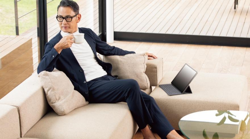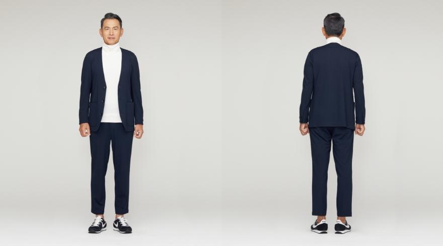 에이오키에서 선보인 재택근무를 위한 '파자마 수트'. 집에서 일하며 입는 비즈니스 웨어이면서 편하게 쉴 수도 있는 홈 웨어이기도 하다. 정장처럼 입고 화상 회의를 하다가, 쉬는 시간에 소파에 누울 수도 있는 편안한 옷이다. (사진:aoki-style.com)