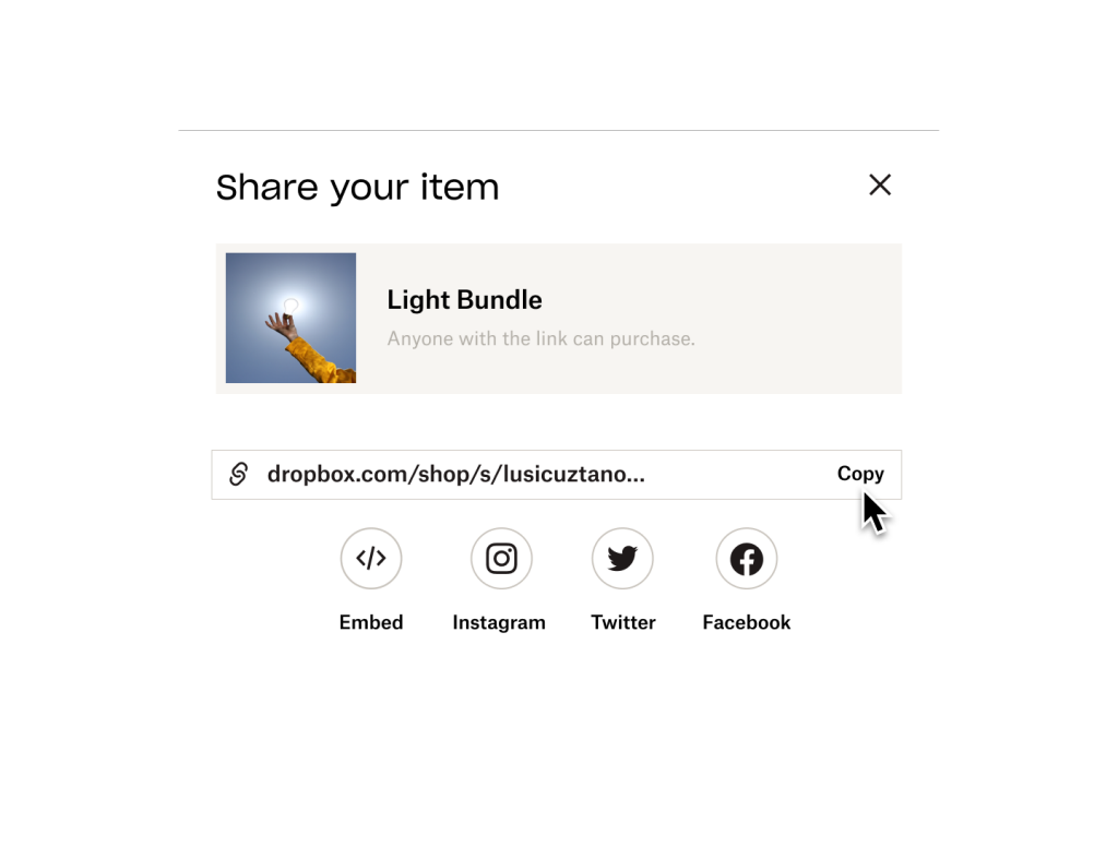 드롭박스에 저장되어 있는 파일 중에서 판매할 대상을 선택하고, 섬네일 이미지, 동영상 및 오디오 미리 보기 화면을 설정하고, 가격만 결정하면 끝이다. 이렇게 세 단계의 과정만 마치면, 바로 해당 파일을 판매할 수 있는 상품 페이지가 개설된다. 간편하고 빠르고 쉽게, 누구나 온라인 디지털 파일을 판매하는 공간을 개설할 수 있는 셈이다.
