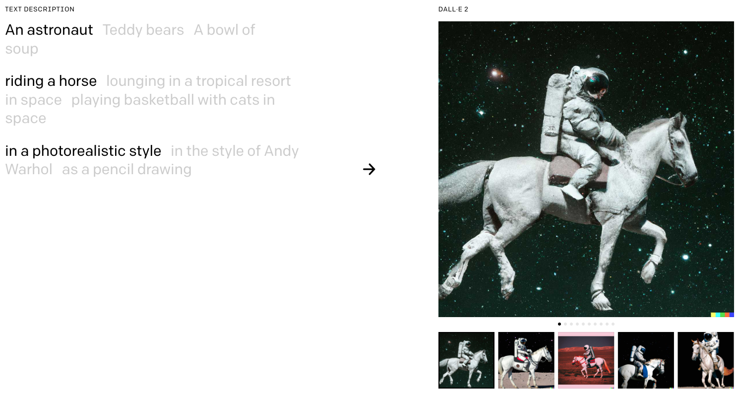 오픈AI가 인공 지능을 활용한 이미지 생성 및 편집 AI 시스템인 DALL·E 2를 베타 버전으로 일반 사용자에게 제공한다. 앞으로 몇 주 동안에 걸쳐 대기자 명단에 등록한 사용자 100만 명을 초대하고, 이들은 무료로 제공되는 크레딧을 활용해, 이미지를 생성, 편집, 변형할 수 있다. 더 많은 이미지를 얻거나 편집하고 싶은 사람은 추가 크레딧을 유료로 구매해서 사용할 수 있다.