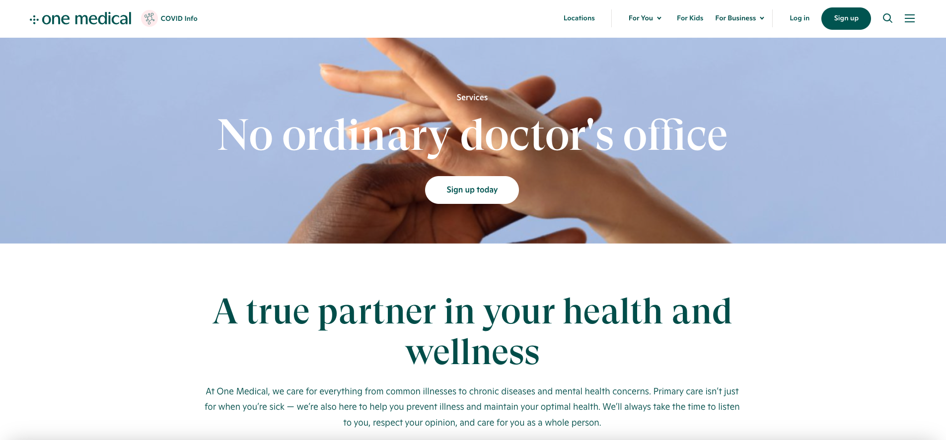 원 메디컬에서 제공하는 진료실(One Medical offices)은 생활이나 쇼핑 공간과 가까운 곳에 위치해 접근성이 뛰어난 것도 장점이다. 미국의 경우 진료 예약에 몇 주씩 걸리는 경우가 적지 않고, 병원이나 진료가 가능한 곳까지 이동하는 데도 차를 통해 적지 않은 거리를 이동해야 하는 경우가 많다. 또한 처방전을 가지고 약을 받기 위해 약국까지 운전해서 이동해야 하는 것도 흔한 일이다.