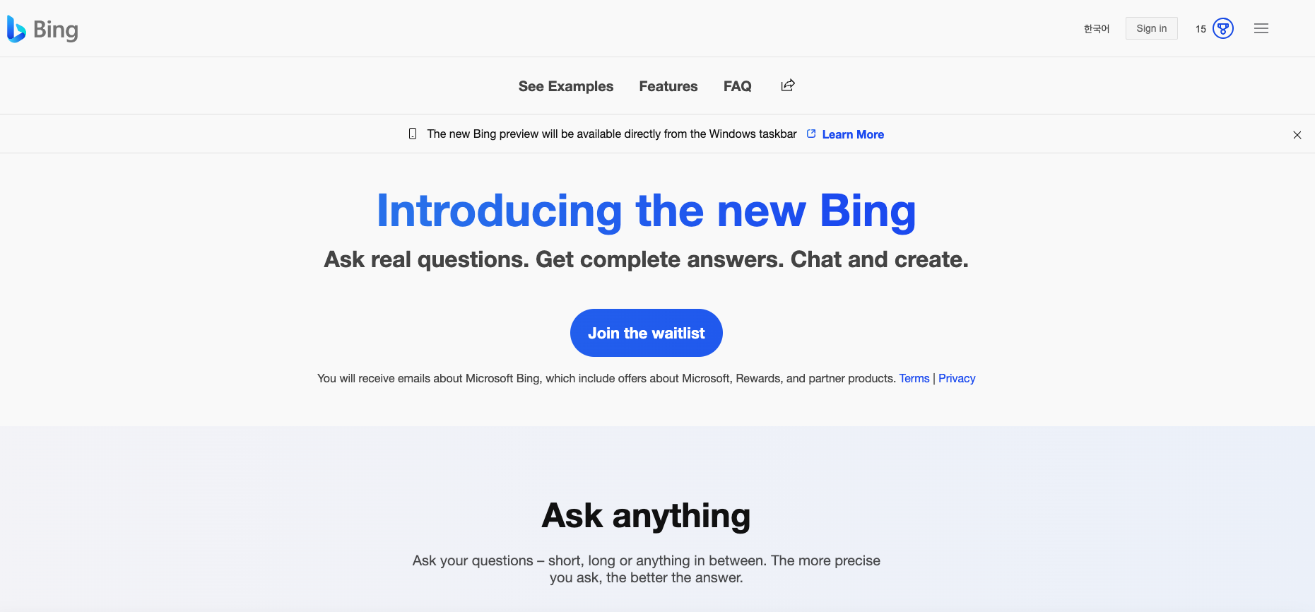 아는 사람만 알고, 쓰는 사람만 쓰던, 존재감 없던 검색엔진. 불과 약 한 달 전까지 마이크로소프트의 검색엔진 빙(Bing)이 그랬다. 하지만 마이크로소프트가 지난 2월 7일 인공지능 챗봇을 탑재한 '새로운 빙'을 미리 보기(Preview)로 공개한 후, 100만 명 이상의 미리 보기 사용자와 일일 활성 사용자(DAU;Daily Active Users) 1억 명을 돌파했다.