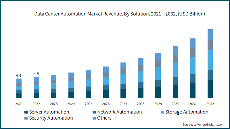 이러한 문제를 가장 빠르고 효과적으로 해결하기 위해 만든 기업들이 데이터 센터 자동화에 본격적인 투자에 나서고 있다. 데이터 센터 자동화 시장은 구성 요소로 볼 대 솔루션과 서비스 분야로 크게 나눌 수 있고, 솔루션 부문에서 서버 자동화 부문이 예측 기간 약 13.5%의 성장세를 달성하며 빠른 성장세를 이어갈 전망이다.