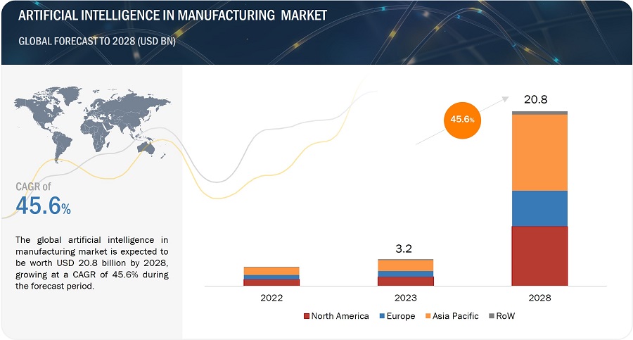 마켓앤마켓(MarketsandMarkets)이 '2028년까지 제조 시장에서의 인공 지능 전망(Artificial Intelligence in Manufacturing Market - Global Forecast to 2028)' 보고서를 통해 제조업에서도 AI 적용이 빠르게 확산될 것으로 진단했다. 다양한 분야의 생산 공정에서 자동화가 진행되면서 생성되는 데이터를 수집, 분석, 처리하는 과정에서 AI 활용이 빠르게 증가할 것으로 분석했다.