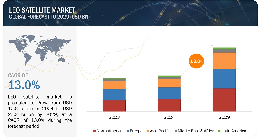 저궤도 위성 시장이 2024년 126억 달러에서 2029년 232억 달러로 13%(CAGR) 성장할 전망이다. 2024년 2,970 유닛으로 추정되는 저궤도 위성 볼륨(volume)은 2029년까지 4,363대로 증가할 것으로 예상된다. 다양한 분야에서의 급속한 수요 증가가 시장 성장을 이끌 것으로 예측됐다.