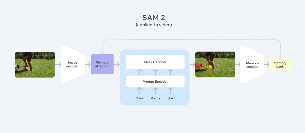 메타(Meta)가 이미지와 비디오에서 실시간으로 객체(Segment)를 인식하고 분리할 수 있는 SAM 2(Segment Anything Model 2)를 공개했다. 아파치(Apache) 2.0 라이선스에 따라 코드와 모델 가중치를 오픈 소스로 공개해 누구나 사용할 수 있고, 약 5만 1,000개의 실제 영상과 60만 개 이상의 시공간 마스크(spatio-temporal masks)가 포함된 SA-V 데이터 세트도 함께 공개했다.