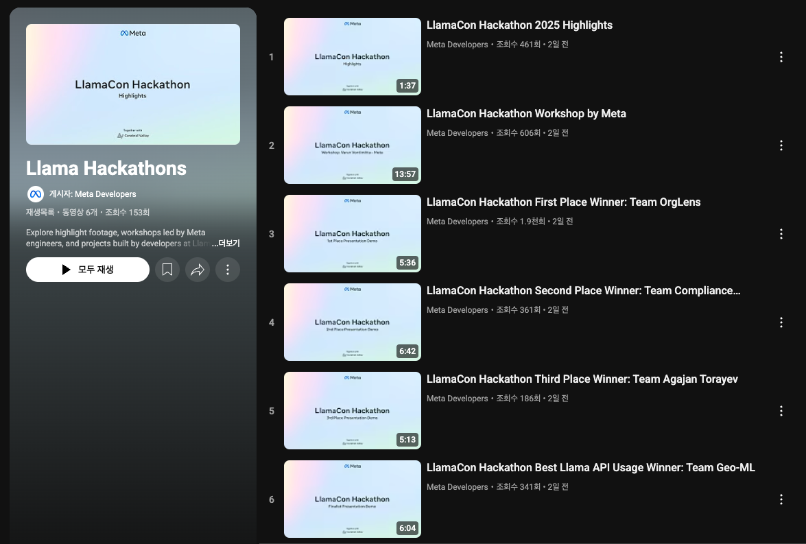 이번 라마콘 해커톤 하이라이트와 최종 결선에 진출했던 프로젝트에 대한 내용은 유튜브에서 확인할 수 있다. 아울러 2025년 5월 31일부터 6월 1까지(미동부 서머타임 기준) 라마 개발들이라면 누구나 지원하고 참여할 수 있는 ‘라마 4 해커톤(LIama 4 Hackathon)’이 미국 뉴욕에서 개최될 예정이다.