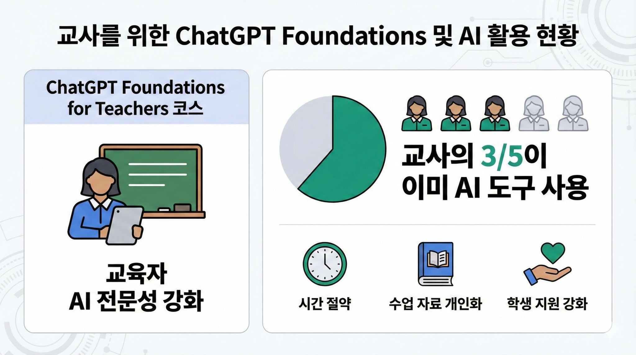 두 번째 인증 과정인 '챗GPT 파운데이션스 포 티처스(ChatGPT Foundations for Teachers)'는 초·중·고 교사를 위한 무료 과정으로, 현재 코세라(Coursera)에서 제공되며 2026년 초에는 챗GPT 내부로 이동할 예정이다. 오픈AI는 미국교사연맹(American Federation of Teachers)과 파트너십을 맺고 40만 명의 K-12 교사에게 이 도구를 제공하는 작업을 진행 중이다.